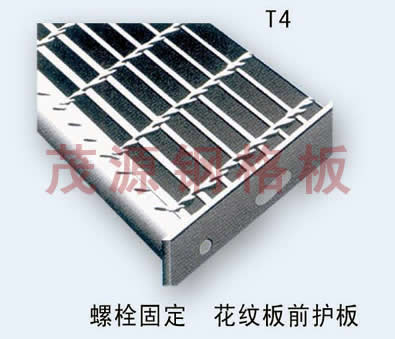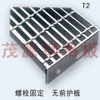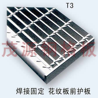我公司生產的踏步板根據有無前護板和與梯梁的聯接方式有四種形式,表示為T1,T2,T3,T4。